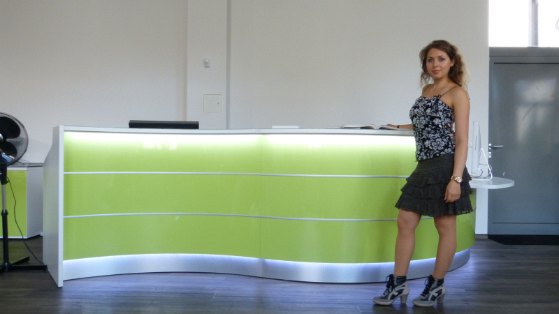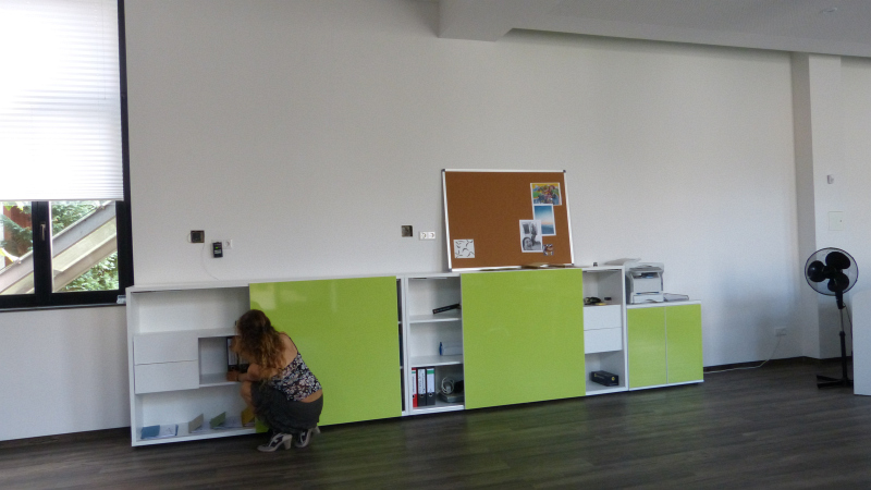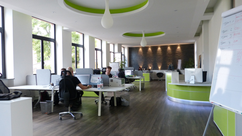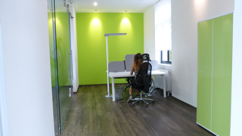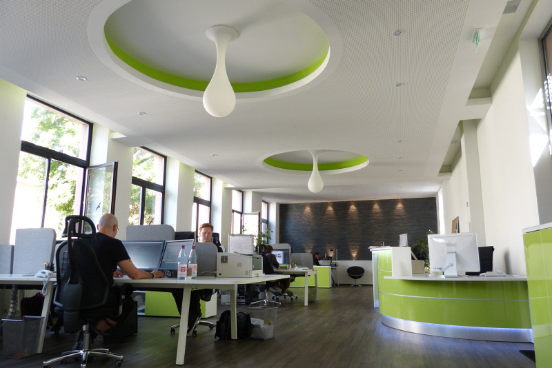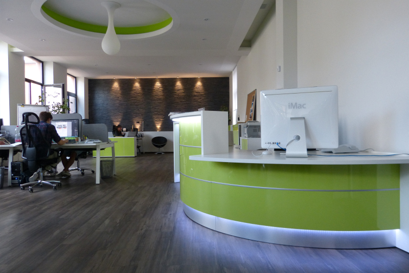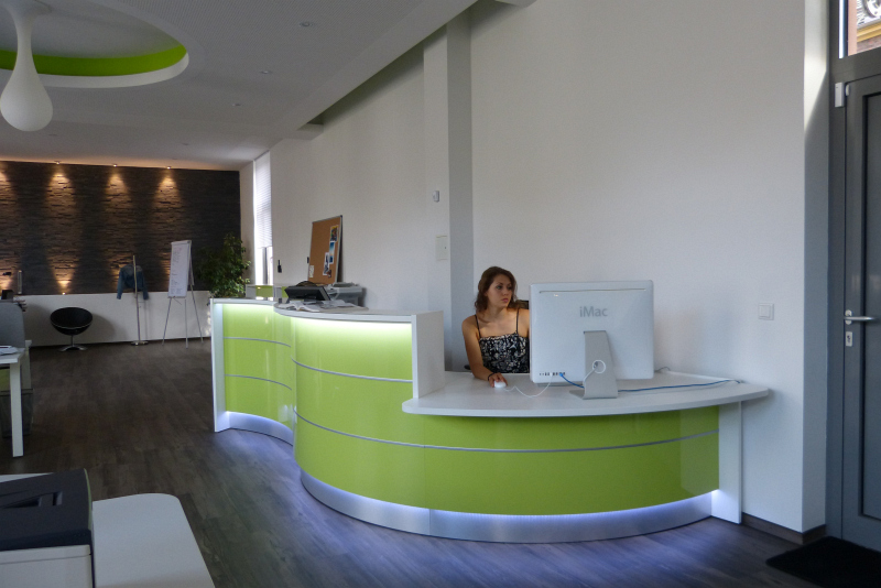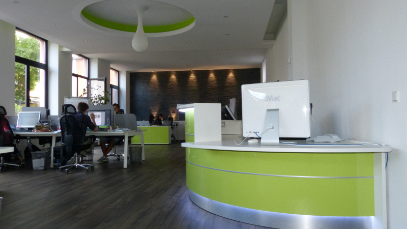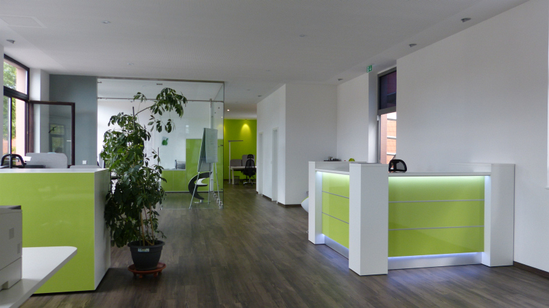 Wir statten das Büro nach Ihren Wünschen aus! Büromöbel, Trennwände und die passende Beleuchtung, alles aus einer Hand und mit einer klar erkennbaren, stilistischen Linie. Das Ergebnis einer solchen Umsetzung sehen Sie bei Autoactiva in Hanau. Farblich auf einander abgestimmte Büromöbel, bestehend aus mehrfach Arbeitsplätzen mit integrierten Trennwänden, Stehlampen, ein durch eine Glastrenwand separierter Meetingraum mit den passenden Büromöbeln, eine Empfangstheke aus unserer beliebten Fun Serie oder die farblich und in Form perfekt eingapasste Deckenbeluchtung hauchen dem Raum eine vollkommene Arbeitsatmospähre ein und lassen in ästhetischer Hinsicht keine Wünsche offen.