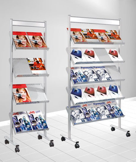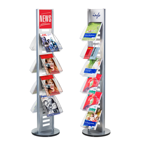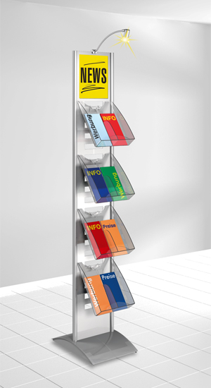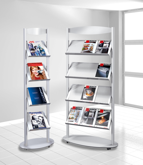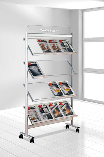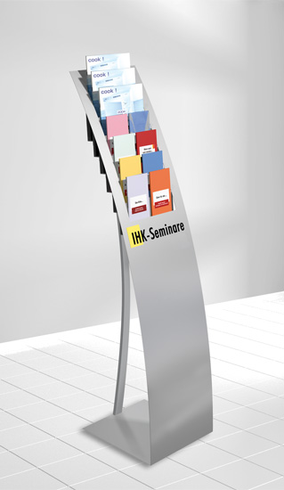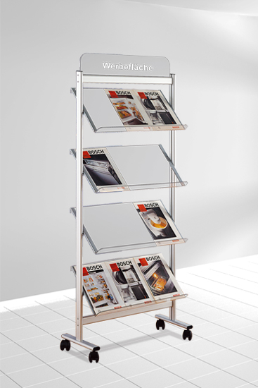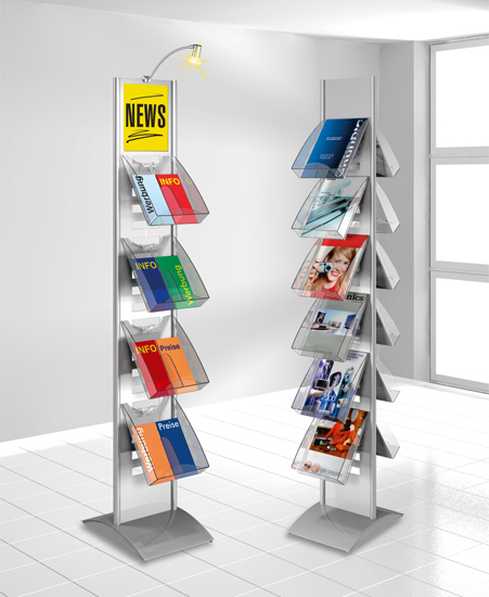 Sie möchten die Informationen über Ihre Dienstleistungen und über Ihre Produkte offen und direkt an Ihre Kunden weitergeben und nebenbei mit Stil und Geschmack punkten, dann haben wir die richtigen Prospektständer für Sie. Dabei haben wir ein Sortiment, das von kleinen Prospekthaltern für die Empfangstheke bishin zu grossen Prospektständer auf Rollen reicht, die Sie auf Messen mitnehmen können um sich zu präsentieren. Alle von uns angebotenen Prospektständer sind von uns sorgfältig ausgewählt und bestechen sowohl im Design als auch in der Benutzerfreundlichkeit und Stabilität, doch das Beste ist, sie sind unverschämt günstig und dabei in kurzer Zeit lieferbar. Fall Sie fragen zu den Infoständern haben oder noch nicht das passende für Sich gefunden haben, unsere kompetenten Berater kümmern sich gerne und kostenlos um Ihr Anliegen.