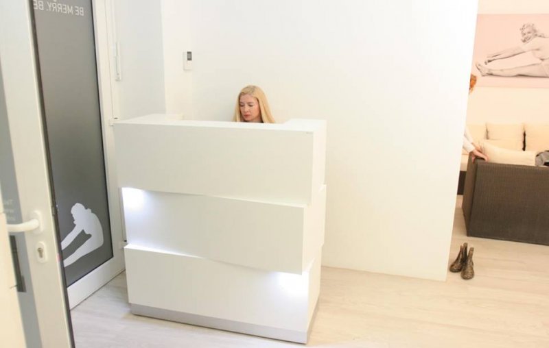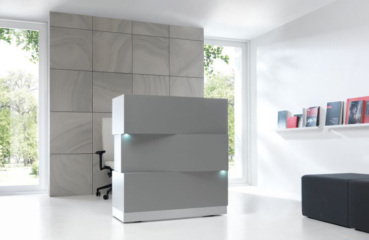 Diese kubische Theke ist durch ihr kompakte Abmessung von 1,1m Breite für Stylingstudios, Nagelstudios und Kosmetistudios bestens geeignet und lässt sich mit weiteren Modulen für mehrere Arbeitsplätze erweitern. Im Aufbau sind die einzelen Quader gegeneinander verschränkt und mit Beleuchtung versehen, was der Empfangstheke eine interessante, futuristische Optik verleiht. Diese Theken sind in kurzer Zeit nach Deutschland, Österreich und in die Schweiz lieferbar und schnell betriebsfertig aufgebaut. Darüber hinaus gibt es die Tresen in verschiedenen Farben, über die sie sich gerne durch unsere kostenlose Beratung informieren können.