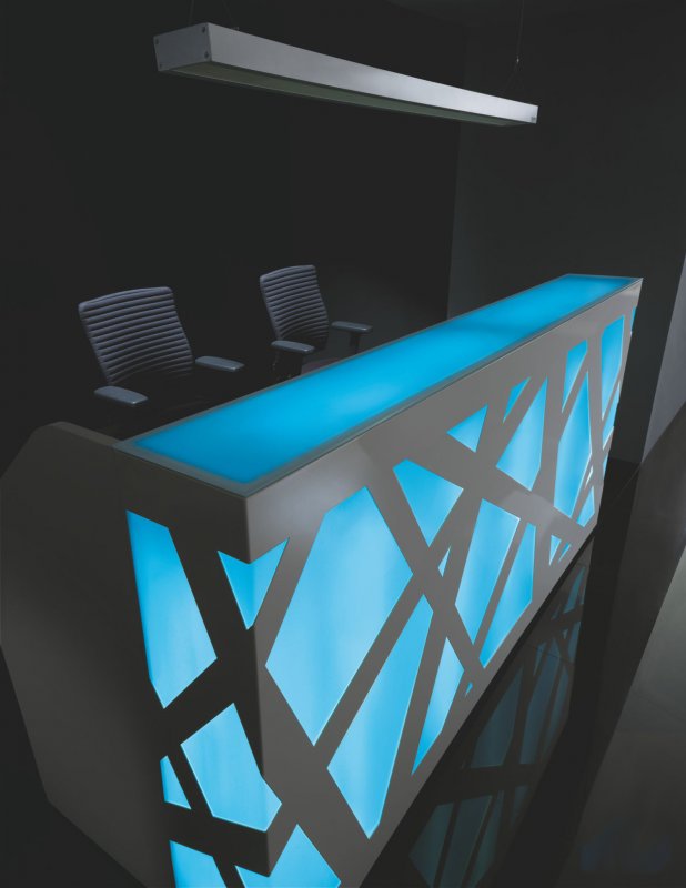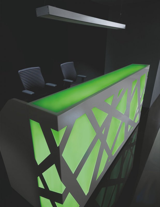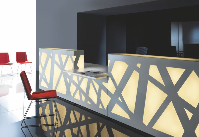 Ausgefallen kann auch preisgünstig sein! Die Empfangstresen der MDZI Serie sind in vielerlei Hinsicht einzigartig und können je nach Wunsch des Kunden vielfältig ausgestattet werden. Die beleuchtete Front verändert ihre Farbe auf Knopdruck, während das Licht durch die HPL Front mit Metaldekor scheint, das in verschiedenen Varianten zur Auswahl steht. Die Empfangstheke ist modular aufgebaut und kann mit verschiedenen qualitativ hochwertigen Komponenten der Raumgrösse und dem Bedarf an Arbeitsplätzen angepasst werden. Als Ablagefläche wird Sicherheitsglas verwendet, das die Qualität dieser Theke zusätzlich unterstreicht und sie im Preis-Leistungsvergleich unschlagbar macht. Lassen Sie sich von unserer kompetenten und kostenlosen Beratung über die Kofiguration und die für Sie richtige Ausstattung beraten und scheuen Sie sich die Optionen in dem Katalog an. Diese Emfangstheken werden in 2-3 Wochen geliefert und von fachkundigen Kräften montiert, so dass sie in kürzester Zeit einsatzbereit sind.