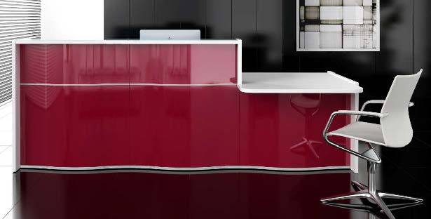 Die günstigen Theken der Serie Ocean Line sind ideal als Ladentheken für Beautystudios, Nagelstudios und Sonnenstudios. Ihrem Namen werden die Theken durch Ihre wellenartige Front gerecht, die je nach Bedarf modular erweiterbar ist und in verschiedenen Farben erhältlich ist. Die Arbeitsplatte ist aus Melamin, die Topplatte zusätzlich mit Glas versehen und die Frontpartie mit Aluminiumstreifen für ein gehobenes und elegantes Aussehen dekoriert.