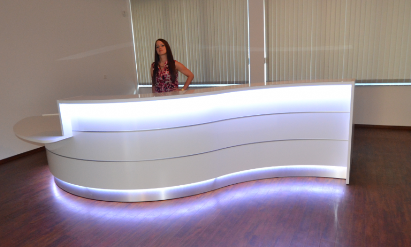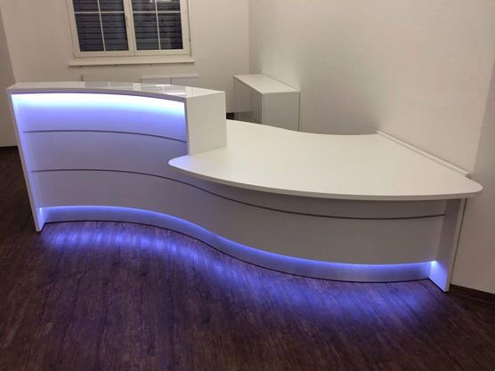 Unser Klassiker, die günstige, weisse Empfangstheke der Fun Serie in modularer Bauweise und mit beleuchteter Hochglanzfront. Jetzt innerhalb 48 Stunden lieferbar, solange der Vorrat reicht.